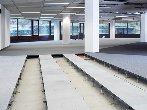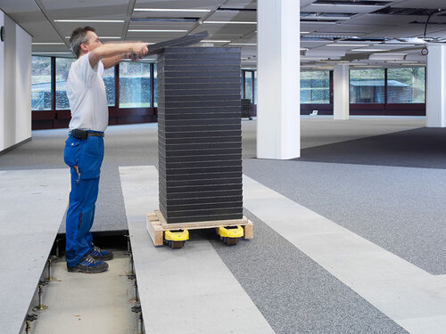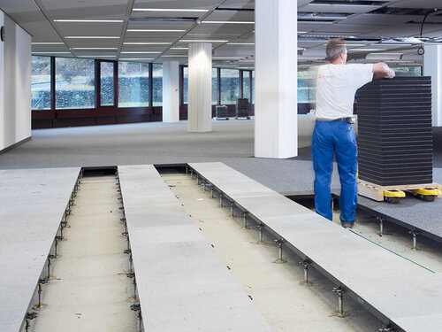 Wir bieten massgeschneiderte Sanierungslösungen für jedes Objekt – vom Ersatz der Unterkonstruktion bis zum Austausch alter Bodenplatten. Unsere Experten können die Platten sogar in kleinen Teilflächen in möblierten Räumen während des laufenden Betriebs austauschen. Während der De- und Wiedermontage können Sie den Unterboden reinigen und neue Kabel verlegen. Gemeinsam mit Ihnen wählen wir die optimale Vorgehensweise für die Doppelboden-Renovation aus.