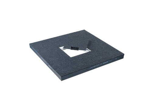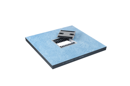 Wir bieten eine Auswahl an verschiedenen Modellen, darunter runde und eckige Varianten. Die eckigen Deckel sind wahlweise mit Fliesen oder Chromstahl erhältlich und fügen sich nahtlos in die Doppelbodenfläche ein. Dank einer präzisen Falz-Ausfräsung sitzen die Durchführungen bündig mit der Oberfläche und sorgen so für einen ordentlichen, gut erreichbaren Installationsbereich.