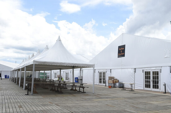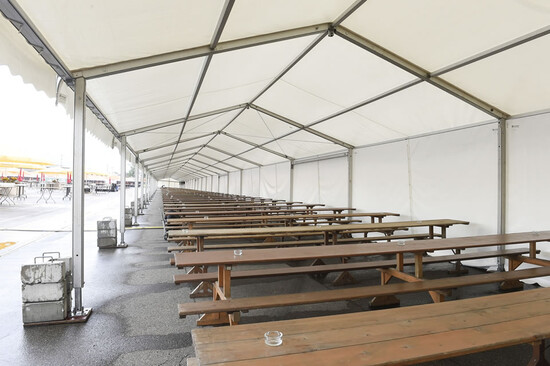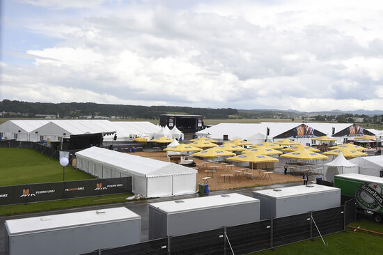 In rund zwei Wochen erstellte Lenzlinger die Zeltinfrastruktur mit Zelthallen, Spitz- und Küchenzelten, Böden, Bestuhlung, Podesten und Einzäunung für diesen aussergewöhnlichen Event. Die riesige Menge des zu bewegenden Materials und der Zeitrahmen bedeuteten für das Logistik und Montageteam eine echte Herausforderung.