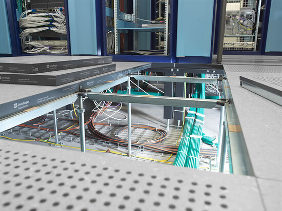 Lieferung und Einbau von Doppelböden des Typs 5 und 7 mit hochverdichteten Spanplatten und Lochlüftungsplatten sowie von Grundrahmen für Schaltschränke in verschiedenen Technikräumen.