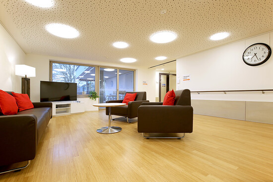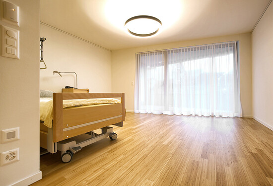 Der Umbau und die Erweiterung des Alters- und Pflegezentrums Wägelwiesen in Wallisellen erfolgte in 3 Etappen. Lenzlinger verlegte dabei insgesamt rund 2'600 m2 Parkett in Zimmern, Gemeinschaftsräumen und auf Verkehrsflächen.