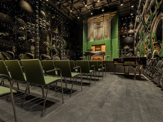 Im Orgelkonzertsaal (mittleres Bild) besteht der Boden aus einer schwarz werkgeölten Variante des Parkettprodukts.