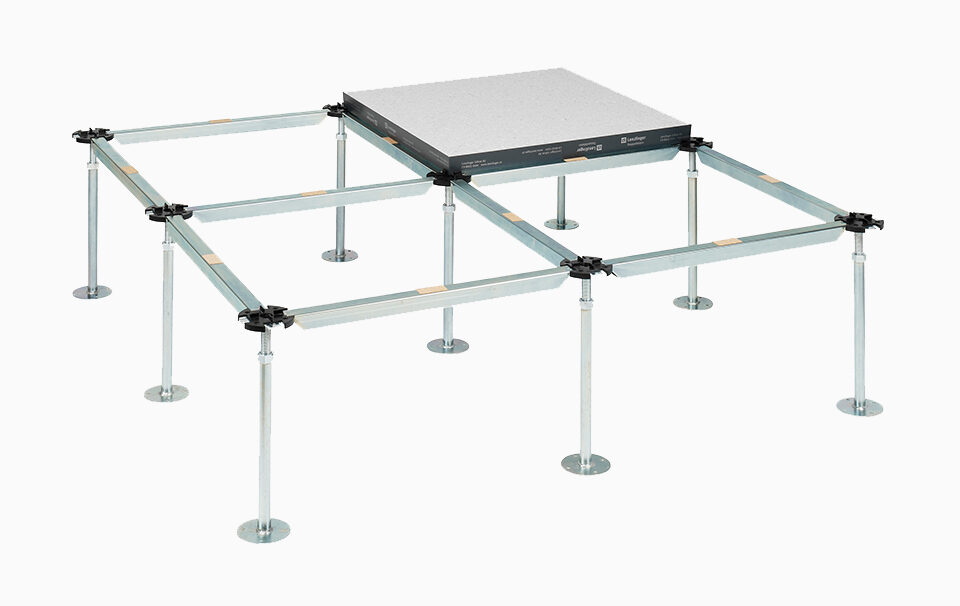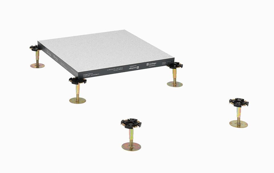Nos sous-constructions sont caractérisées par leur flexibilité et leur polyvalence. Pour des espaces ne présentant que de faibles exigences en matière d’installation, nous proposons des solutions particulièrement plates qui s’intègrent harmonieusement dans le concept spatial. Pour des applications plus exigeantes, par exemple dans des centres de données ou de grands bâtiments administratifs, nous développons des systèmes d'une capacité de charge maximale également capables d’accueillir sans problème une infrastructure technique étendue.