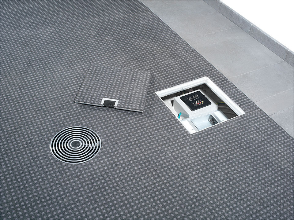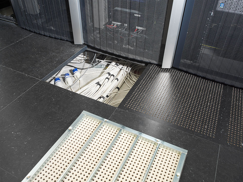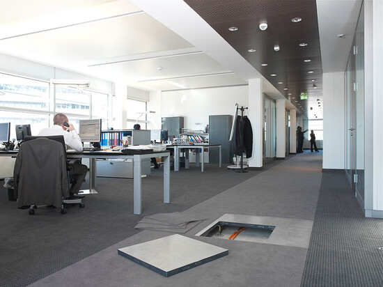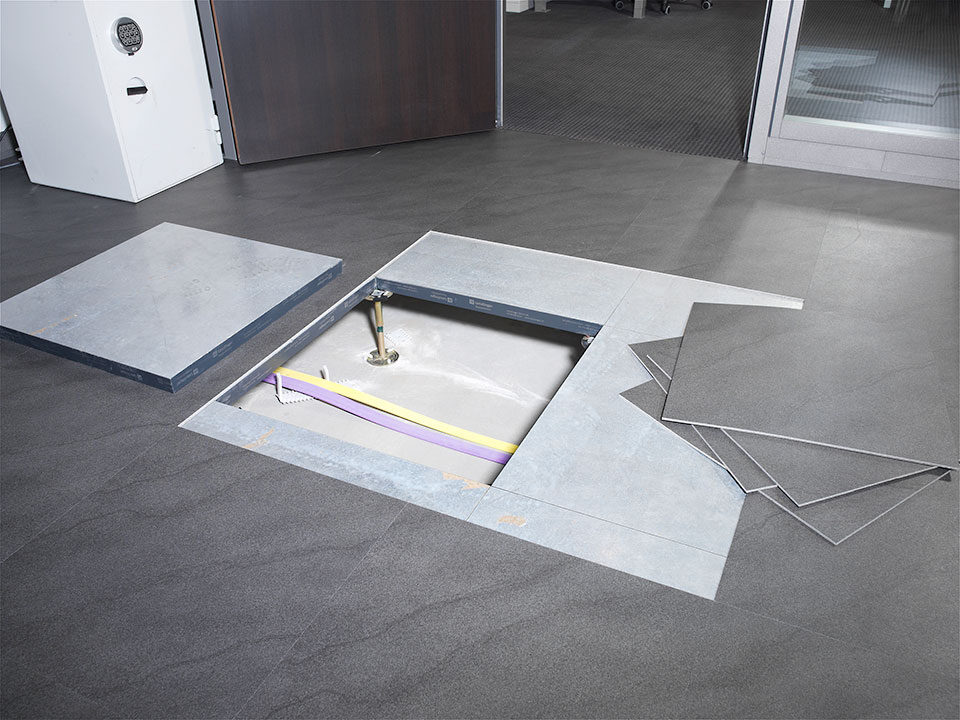 Livraison et installation du faux-plancher en panneaux d’aggloméré à très haute densité de type PSFF-38 et de dalles de moquette en pose libre sur une surface de 3 500 m2.