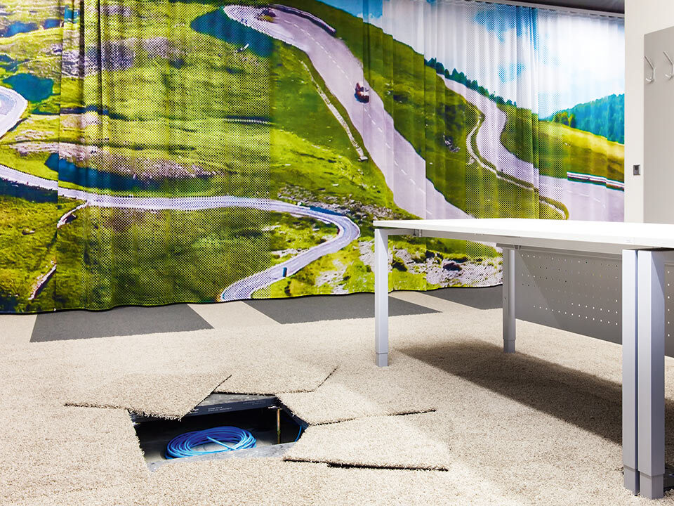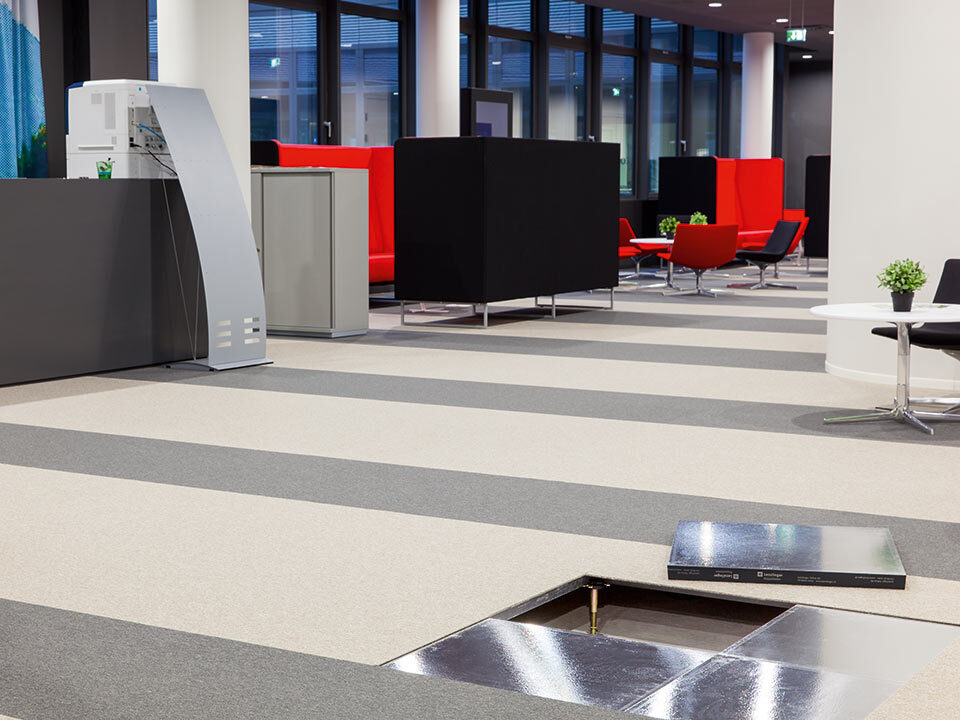 Livraison et installation de faux-planchers en panneaux d’aggloméré à très haute densité de type PSFF-38. Surface totale: 28 000 m2.