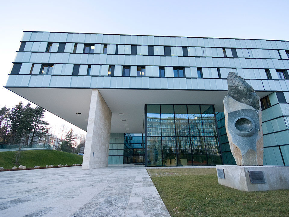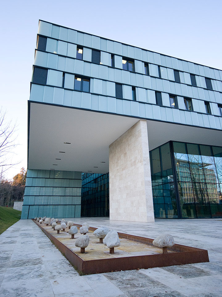 Bâtiment administratif du programme ONUSIDA de l’Organisation mondiale de la santé (OMS). L’immeuble de bureaux est situé dans l’ancien parc du siège de l’OMS à Pregny-Chambésy, une commune du canton de Genève. Ce bâtiment de quatre étages et deux sous-sols totalise une surface de 26 000 m2. environ. Intégré à son environnement, il doit satisfaire à ses exigences tant représentatives que fonctionnelles. Les faux-planchers installés doivent pleinement garantir l’adaptabilité des installations aux besoins de demain.